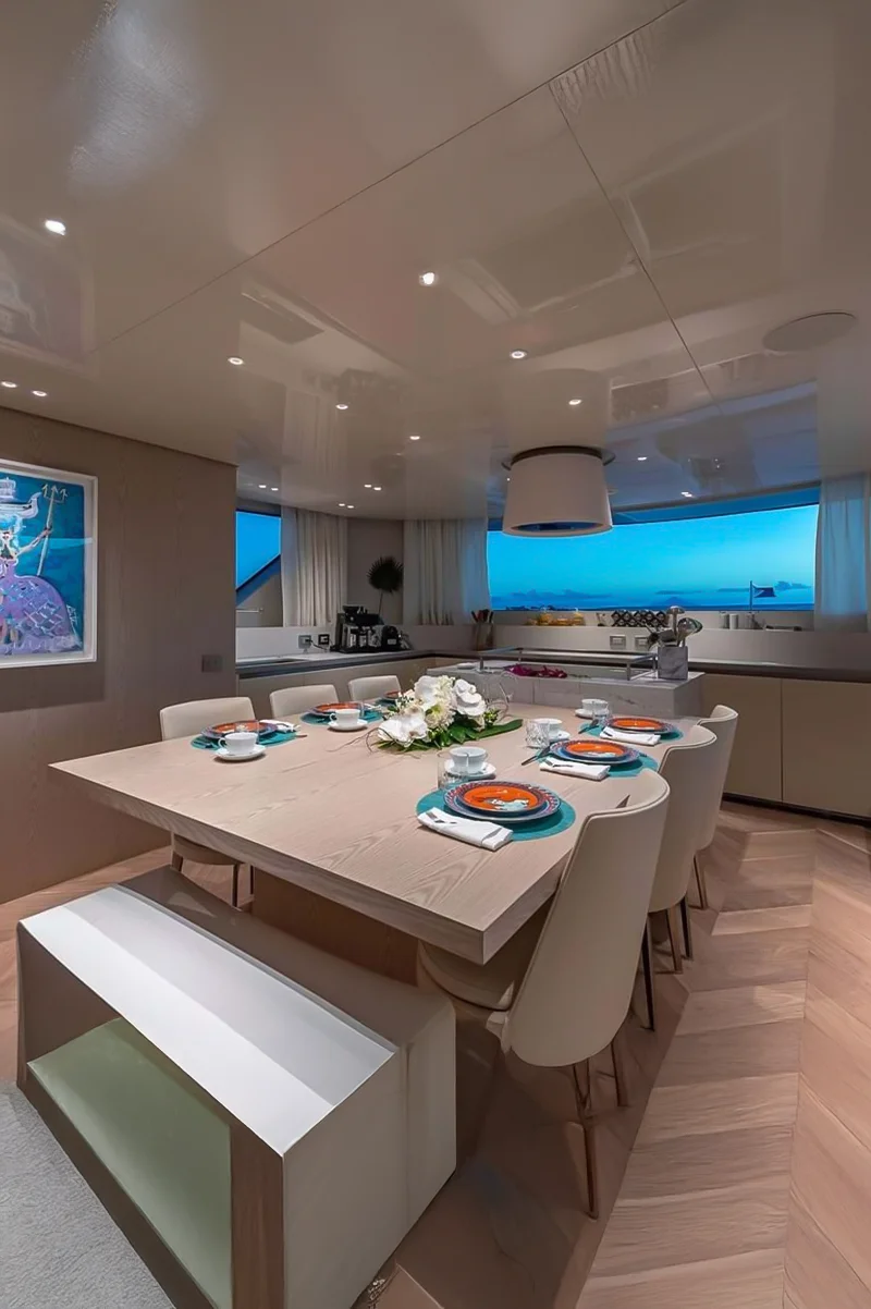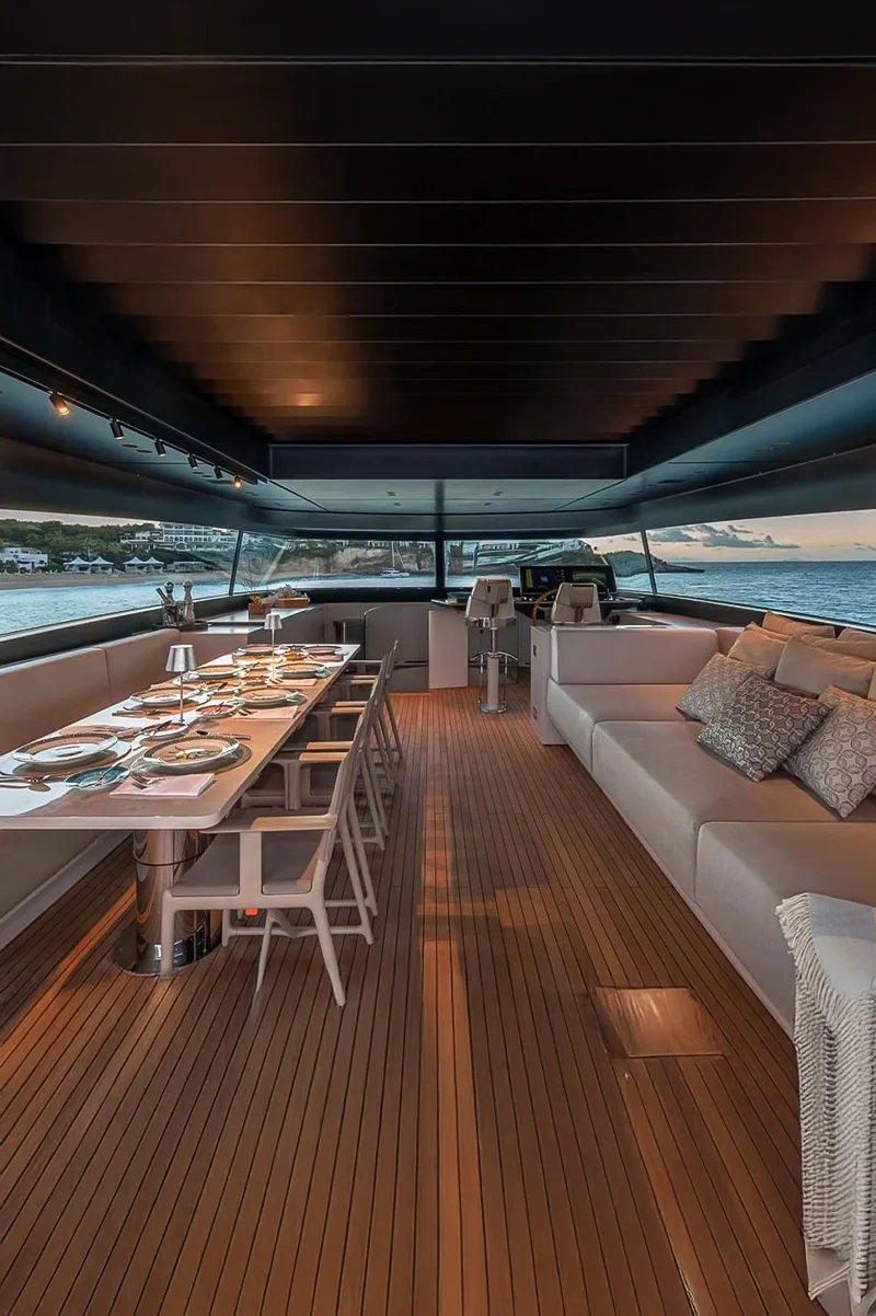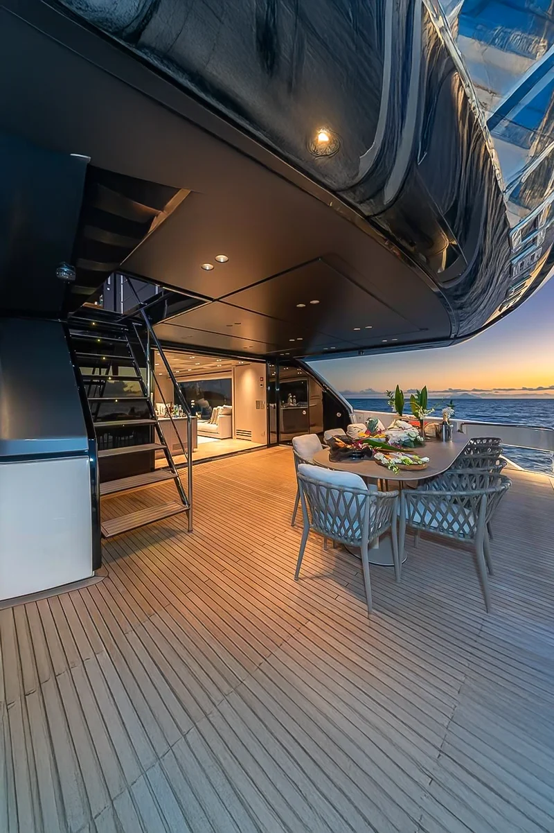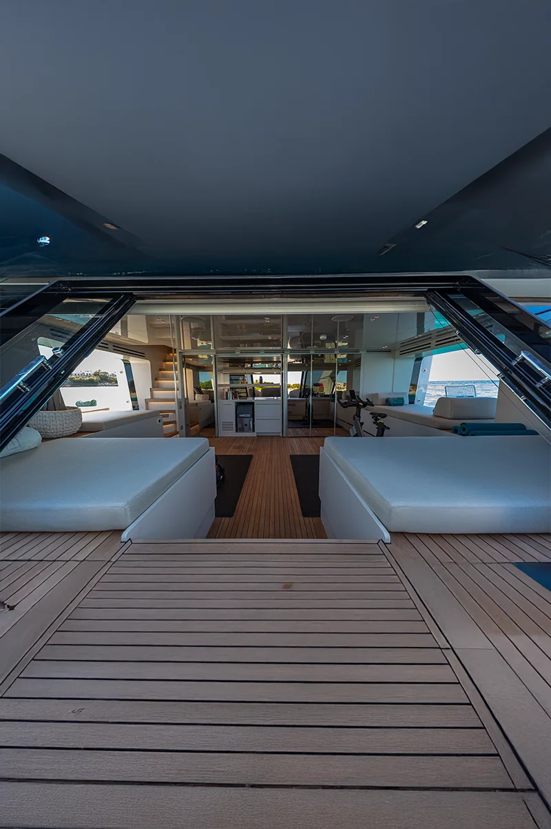 Beach Club: A retractable platform at the stern transforms into a beach club, providing easy water access and a relaxing lounge area.