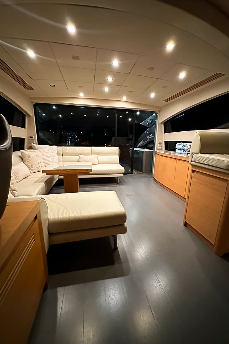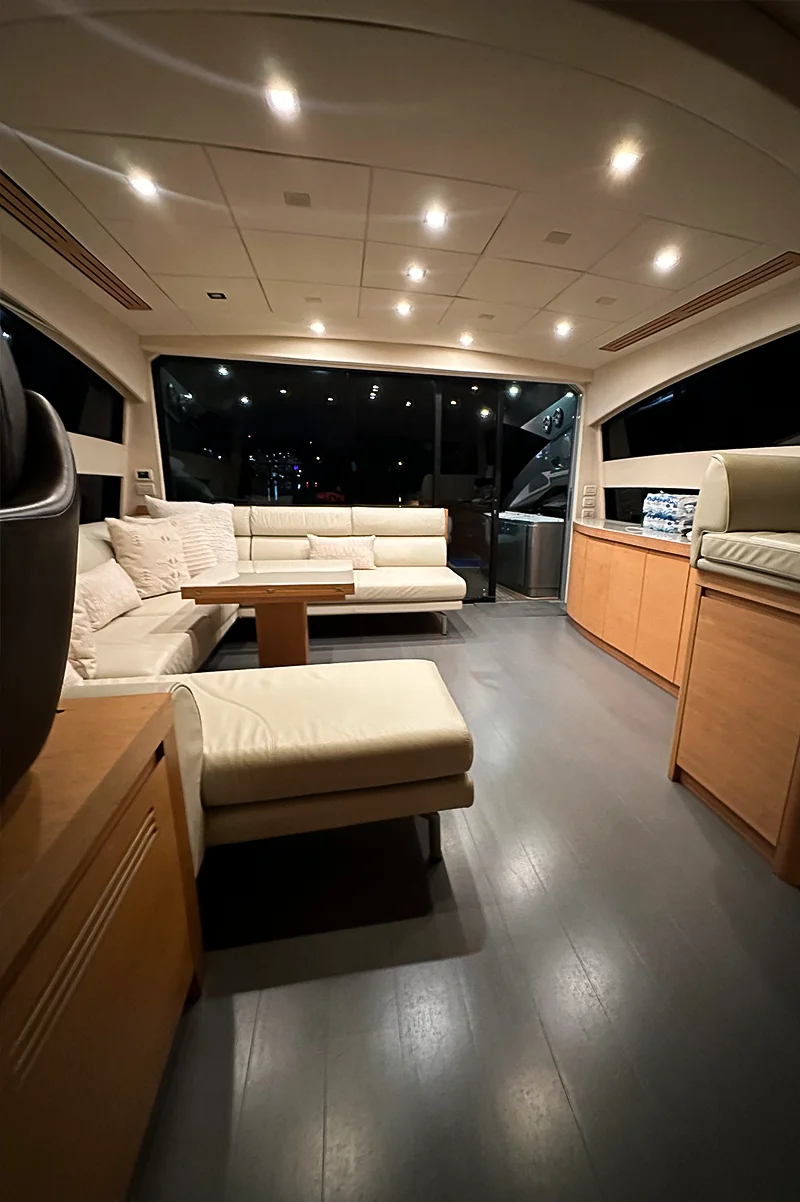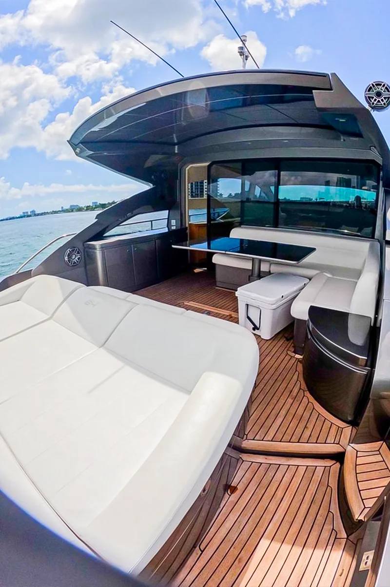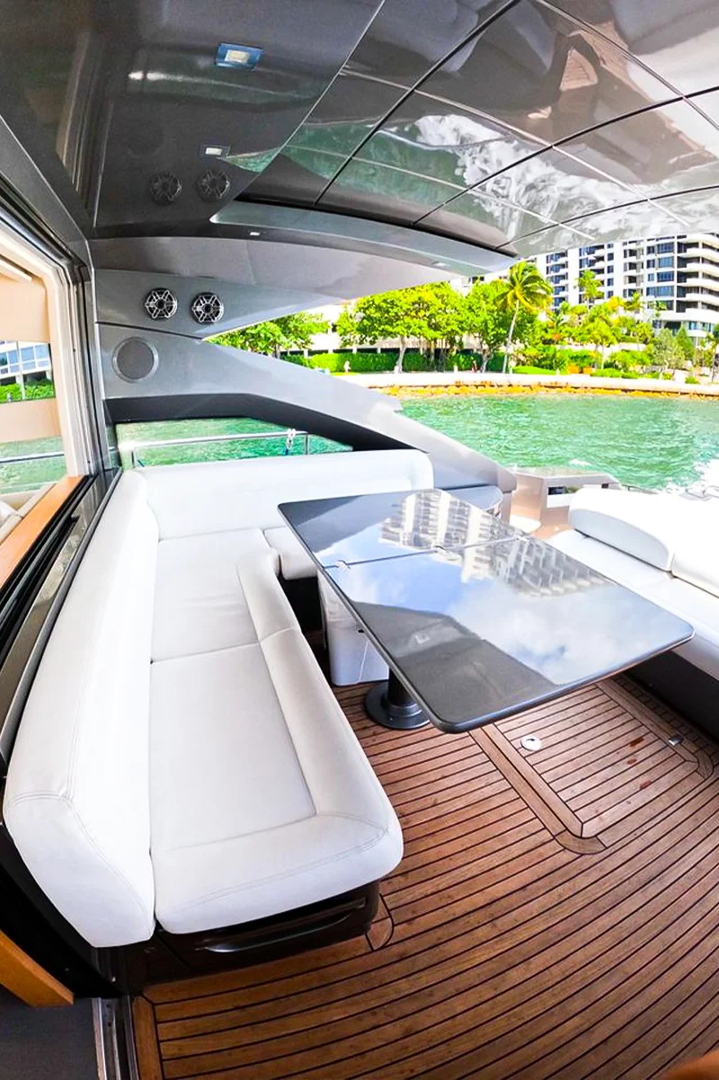 • Flybridge: The expansive flybridge includes sunbathing areas, a wet bar, and a dining table, perfect for outdoor entertaining and enjoying the sun.