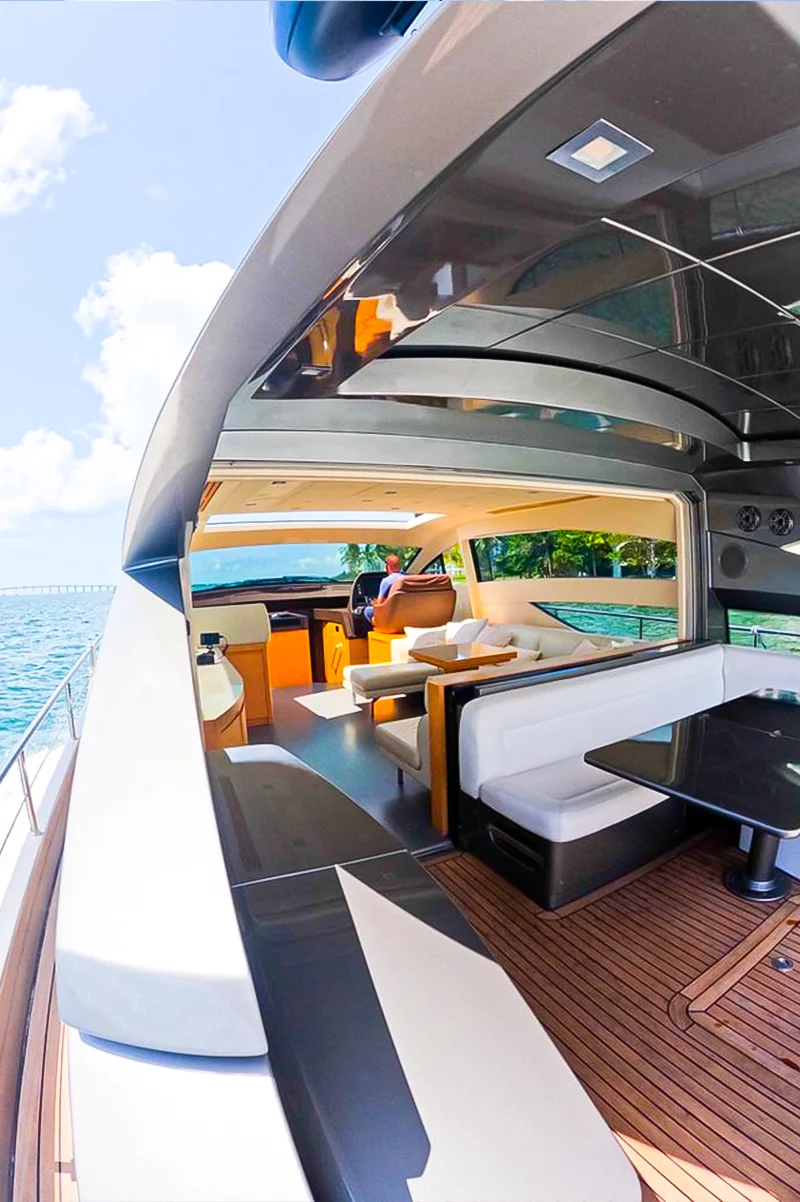 The 64′ Pershing is designed for those who seek both style and performance in their yachting adventures. Its sleek design, powerful engines, and luxurious amenities make it an ideal choice for those looking to experience the thrill of high-speed cruising combined with the comfort and elegance of a modern luxury yacht.