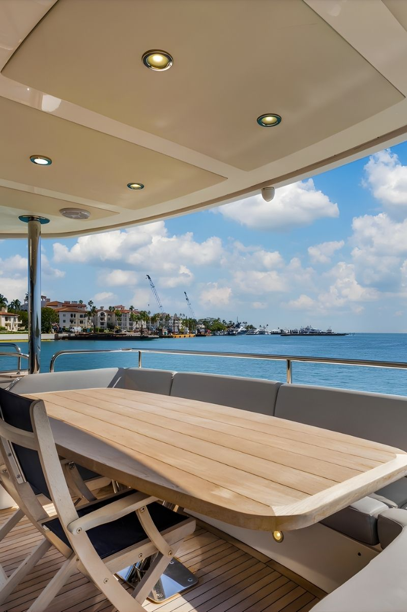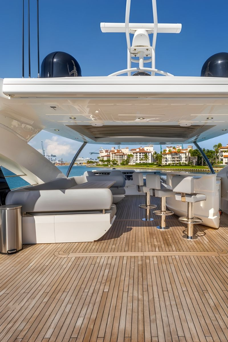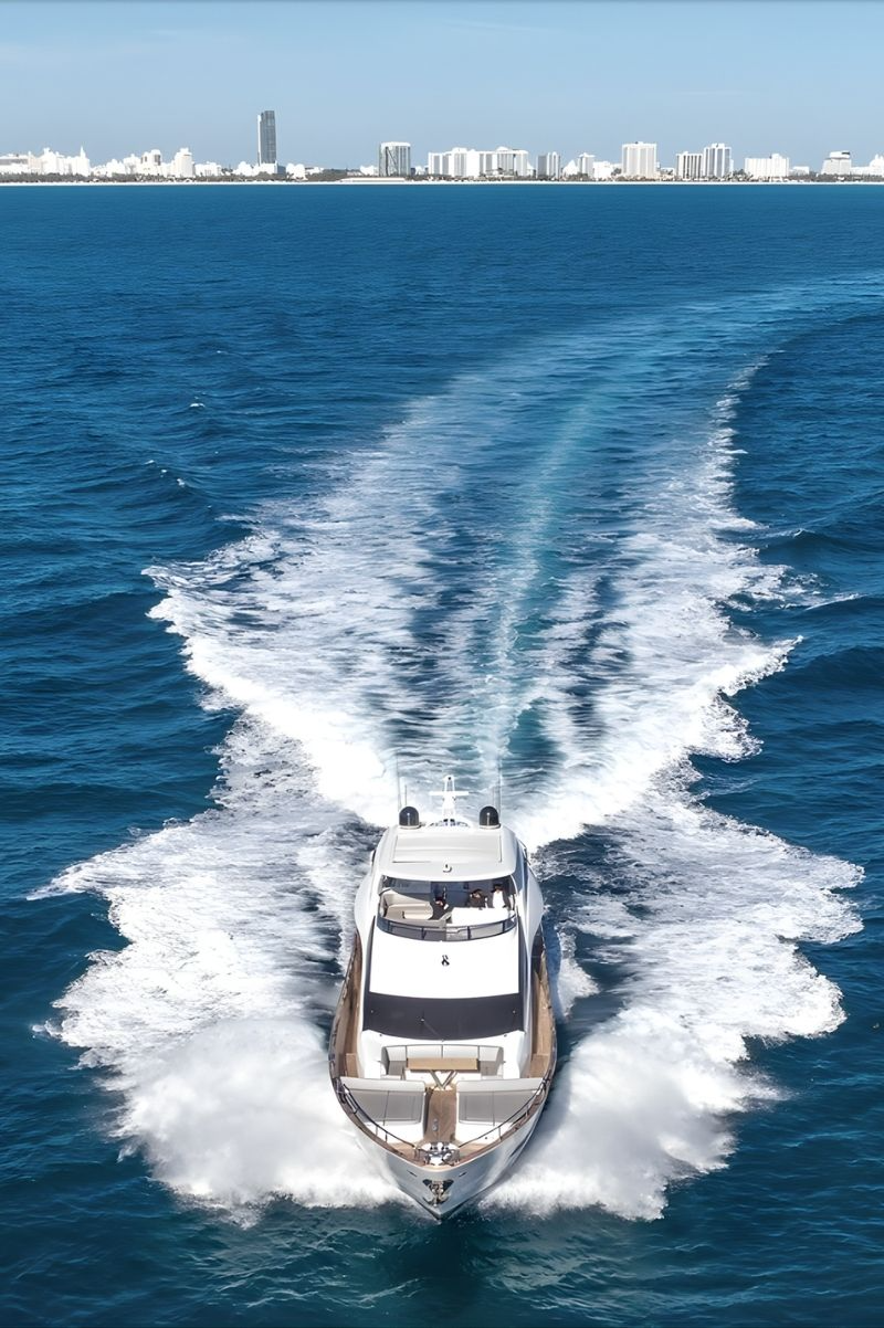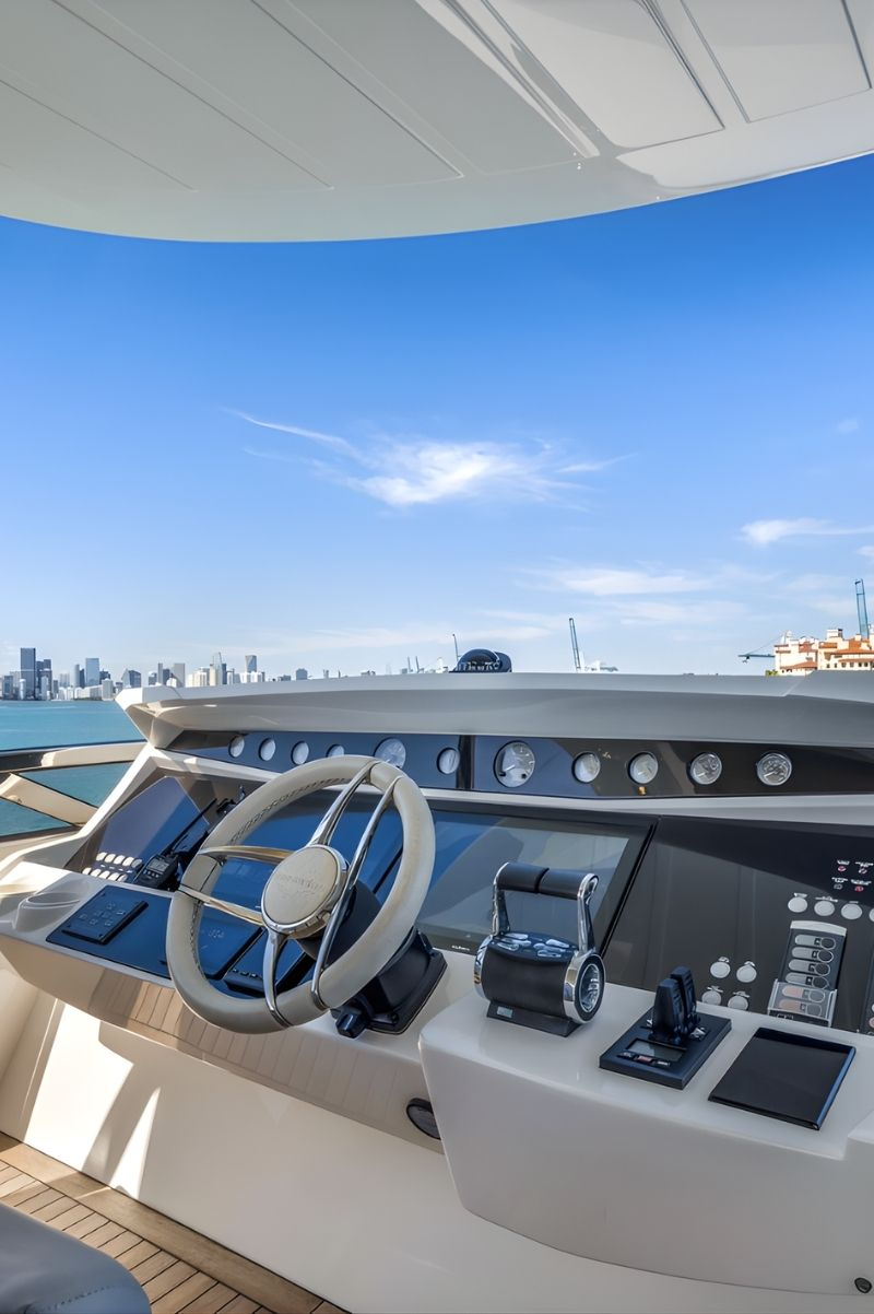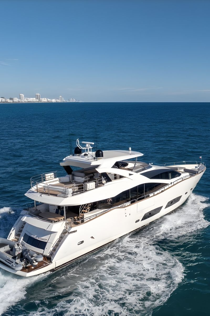 The 92′ Sunseeker, often seen around Miami Beach Marina, represents the yard’s sporty-luxury ethos. Featuring dynamic lines and generous outdoor spaces, it’s perfect for entertaining in style. Modern interiors provide comfortable accommodations while the powerful propulsion system enables brisk coastal runs and island hopping.