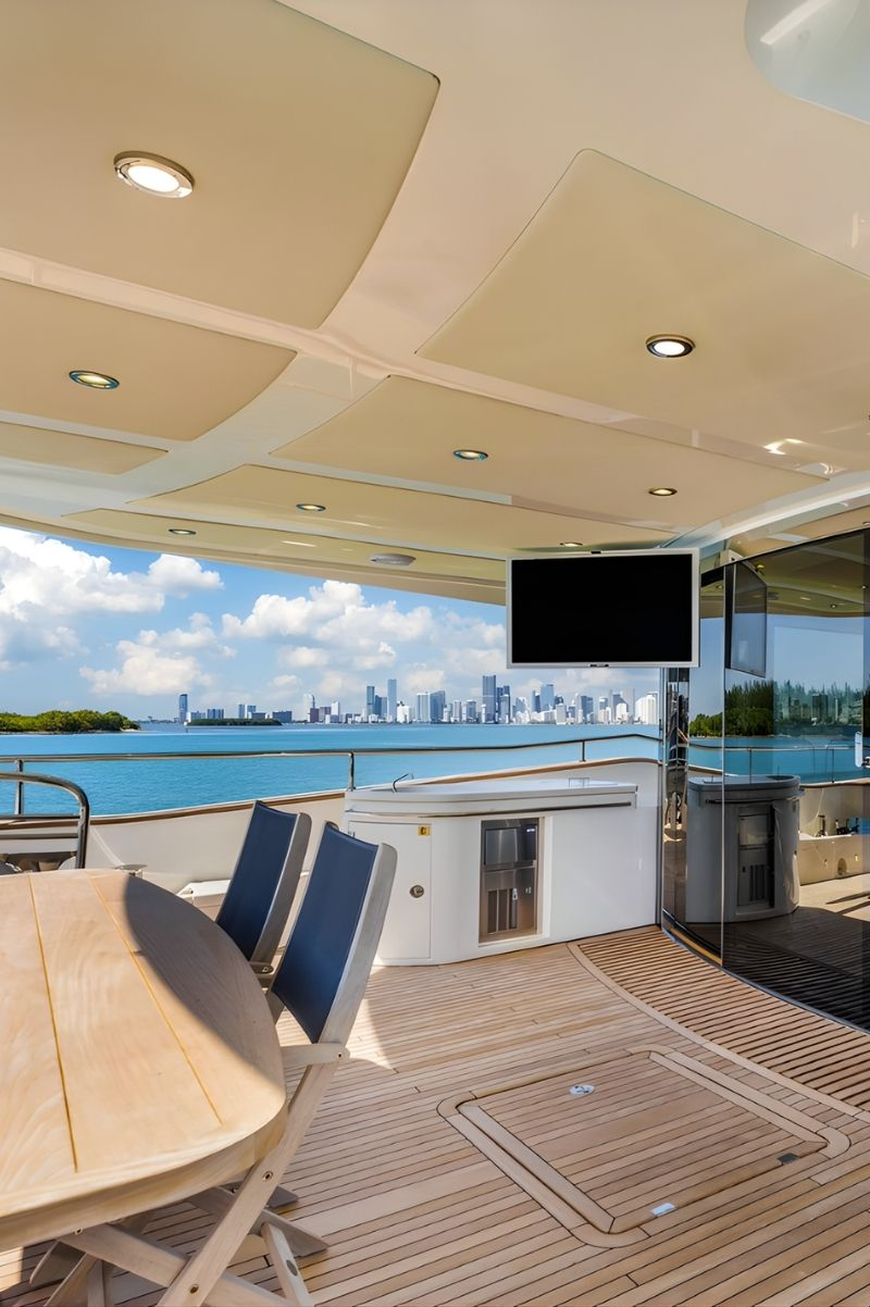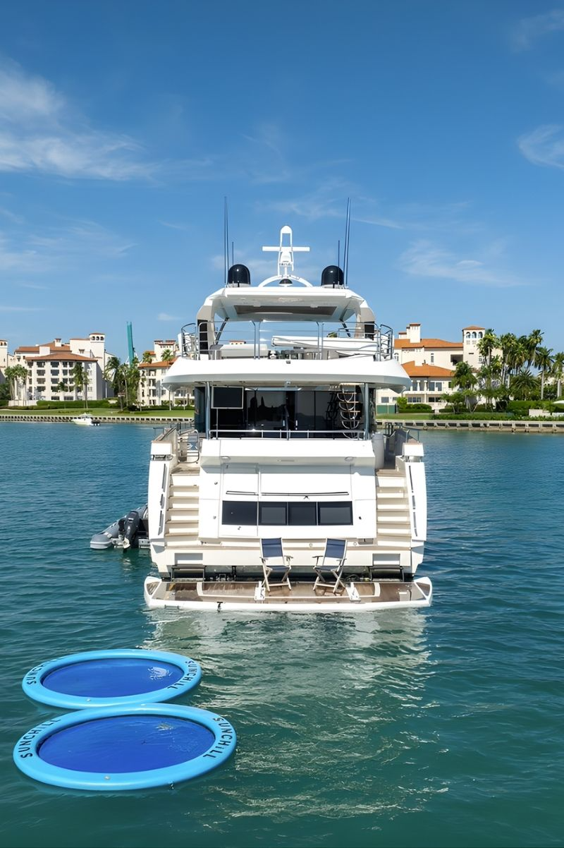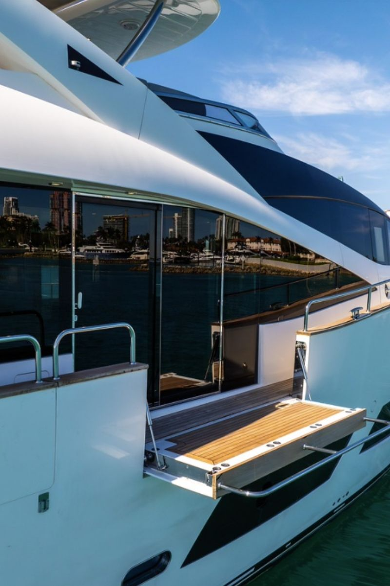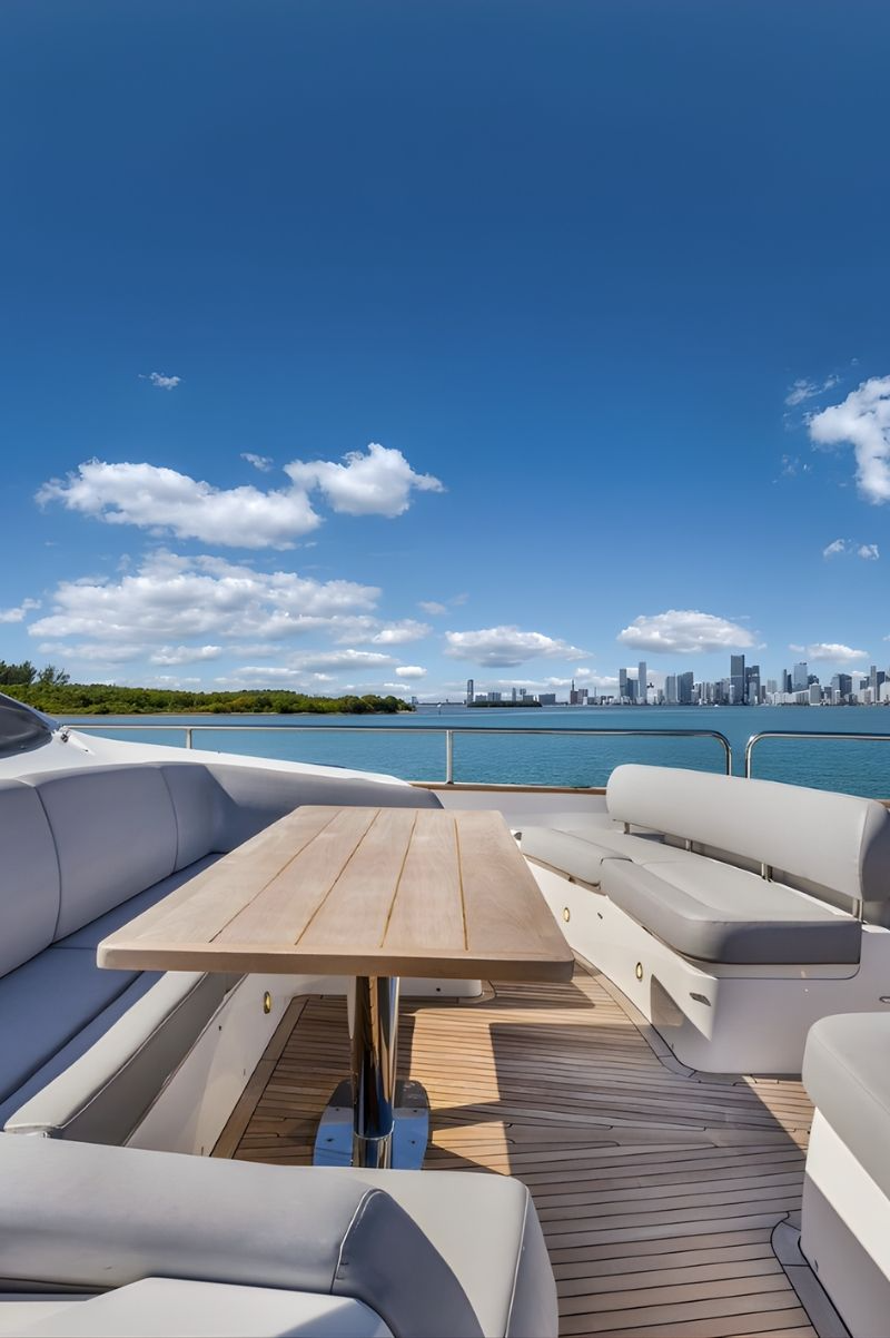 The 92′ Sunseeker, often seen around Miami Beach Marina, represents the yard’s sporty-luxury ethos. Featuring dynamic lines and generous outdoor spaces, it’s perfect for entertaining in style. Modern interiors provide comfortable accommodations while the powerful propulsion system enables brisk coastal runs and island hopping.
