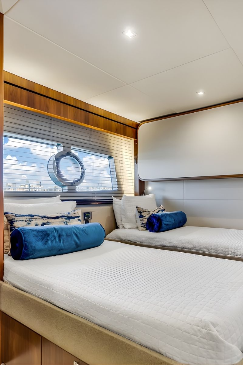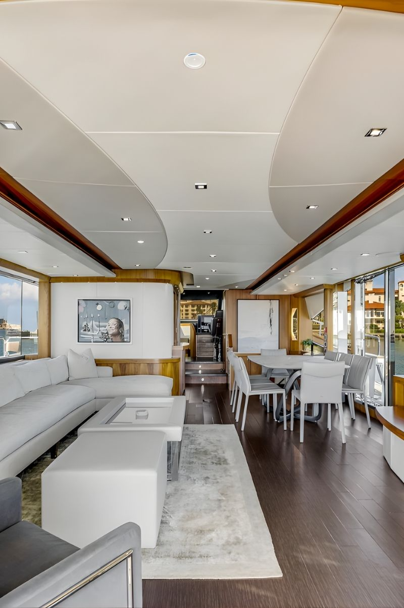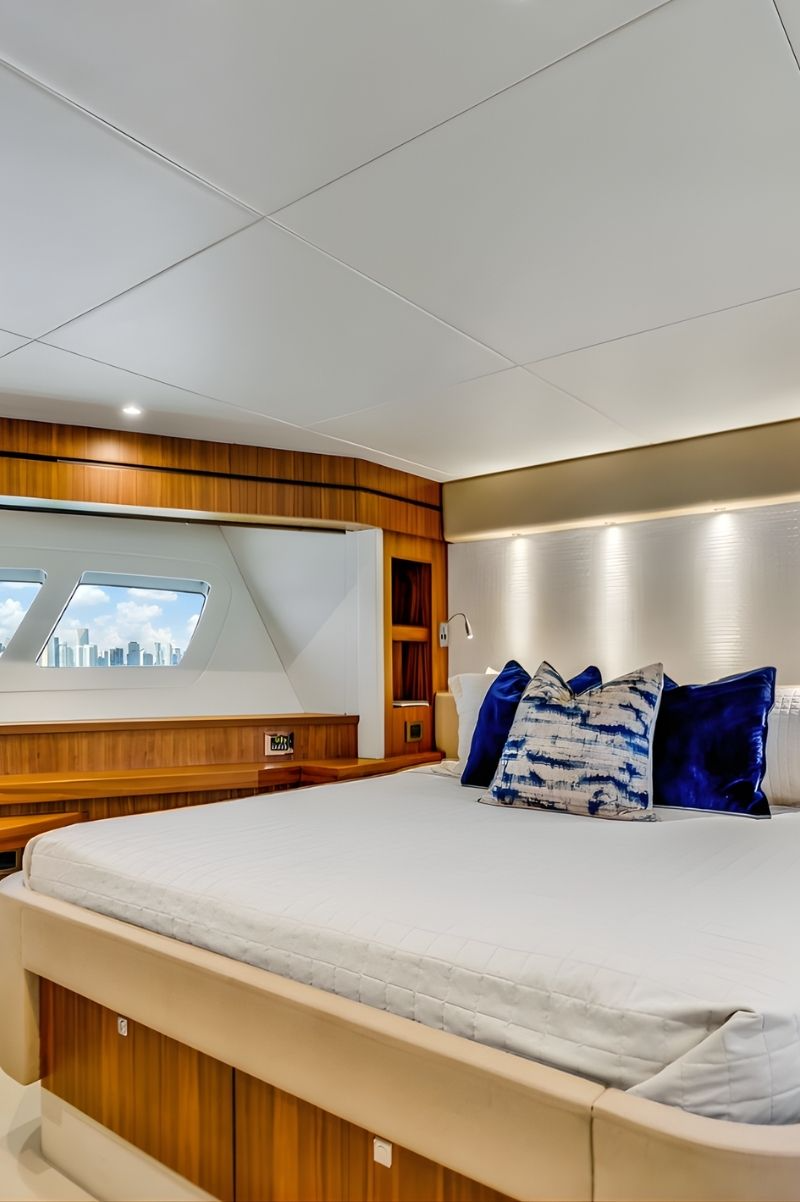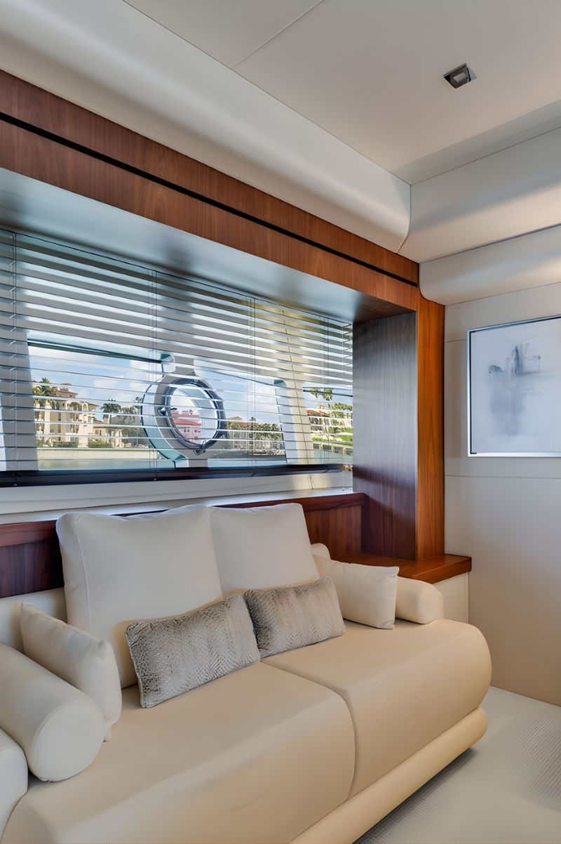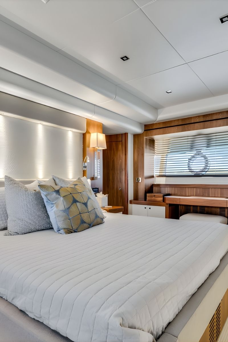 The 92′ Sunseeker, often seen around Miami Beach Marina, represents the yard’s sporty-luxury ethos. Featuring dynamic lines and generous outdoor spaces, it’s perfect for entertaining in style. Modern interiors provide comfortable accommodations while the powerful propulsion system enables brisk coastal runs and island hopping.